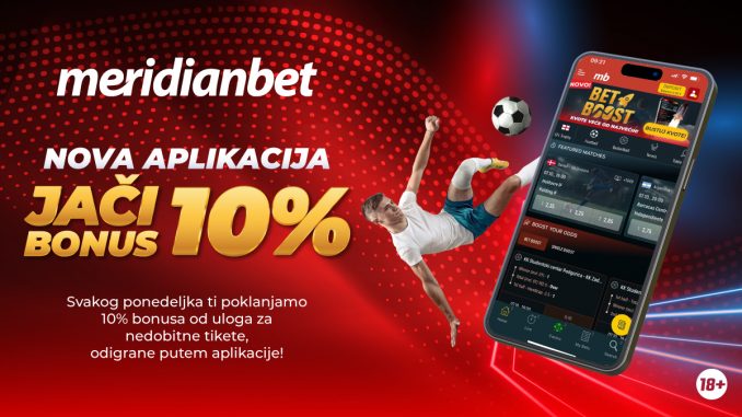 Stigla je nova aplikacija i donosi ti više uzbuđenja, bolje šanse i veće bonuse! Da bi proslavili ovaj trenutak, pripremili su ekskluzivnu ponudu – svakog ponedeljka dobijaš 10% bonusa na sve nedobitne tikete odigrane putem aplikacije! Da, baš tako – čak i kada tiket ne prođe, Meridian te nagrađuje!