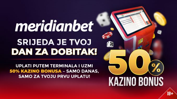 Na snazi je sjajna promocija – svake srijede vas čeka čak 50% kazino bonusa, na prvu dnevnu uplatu putem terminala.
